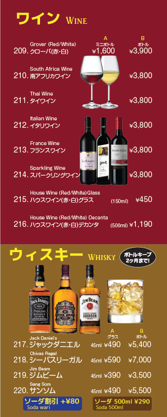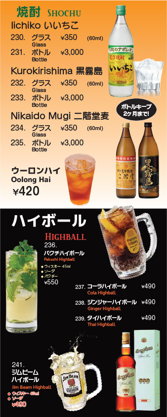 ドリンクメニュー
